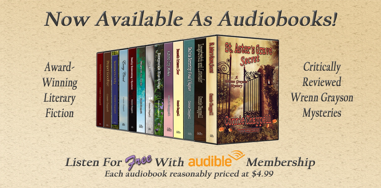 Fabulous news! All of Chappell's novels--both literary fiction and the Wrenn Grayson Mystery Series--are available in audiobook form. Amazon Audible offers a great membership rate, so 'listeners' can enjoy these gripping stories for FREE.